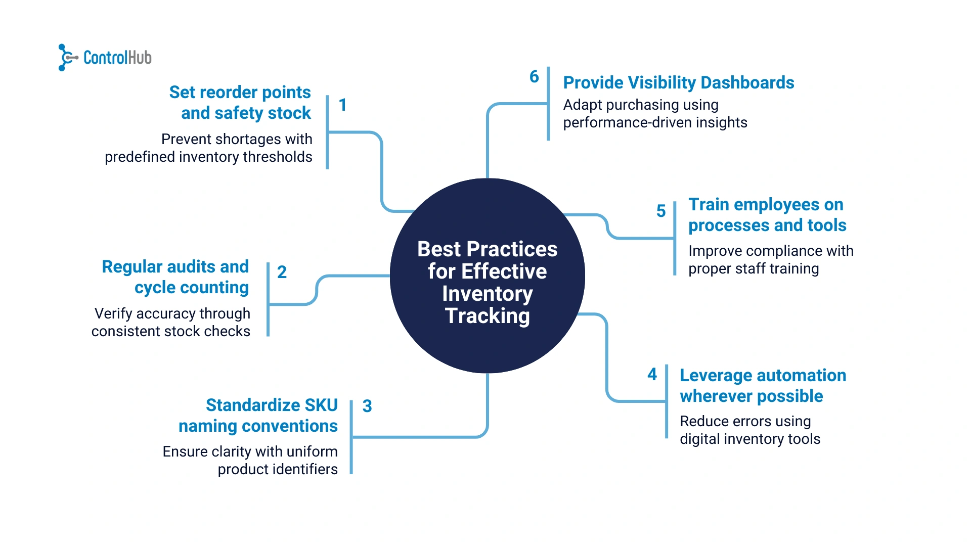 Best practices like setting reorder points, cycle counts, and standardizing SKUs keep your data accurate.